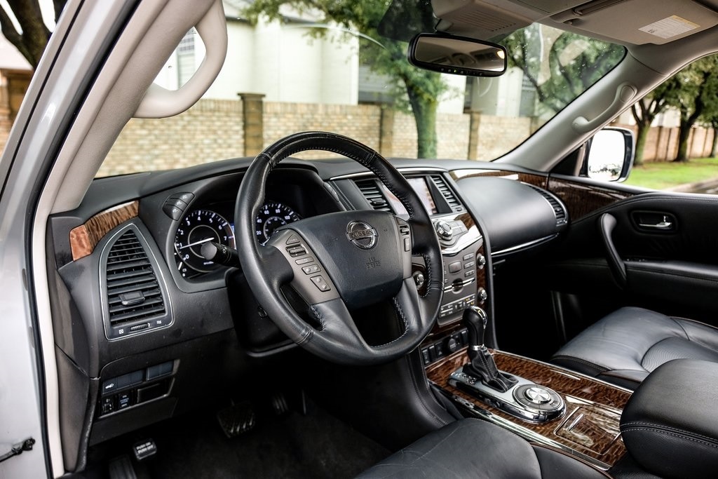 CARFAX has multiple service records, New Tires, Armada SL, Brilliant Silver, Auto-leveling suspension, Automatic temperature control, Emergency communication system: NissanConnect Services, Front dual zone A/C, Garage door transmitter: HomeLink, Heated Front Bucket Seats w/Driver Memory, Heated front seats, Memory seat, Navigation System, Power Liftgate, Power Sliding Moonroof w/Front Tilt & Rear Slide, Radio: Bose AM/FM/SXM/CD/MP3/HD Radio, Rear air conditioning, Steering wheel mounted audio controls, Wheels: 20" Machined Finish Painted Alloy. SL