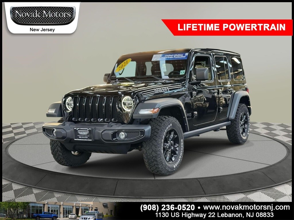 LOW MILEAGE-ONE OWNER-OFF LEASE-LIFETIME ENGINE AND TRANSMISSION WARRANTY-CLEAN CARFAX-FULLY SERVICED AND PASSED DEALERSHIP 58 POINT INSPECTION. 115V Auxiliary Power Outlet, 4-Wheel Drive Swing Gate Decal, 7.0" Touchscreen Display, 8.4" Radio & Premium Audio Group, Air Conditioning w/Auto Temperature Control, Air Filtering, Alpine Premium Audio System, Anti-Spin Differential Rear Axle, Apple CarPlay, Auto-Dimming Rear-View Mirror, Automatic Headlamps, Black Grille, Black Trail Rated Badge, Cluster 7.0" TFT Color Display, Cold Weather Group, Console Bin Task Light, Convenience Group, Deep Tint Sunscreen Windows, Emergency/Assistance Call, For More Info, Call 800-643-2112, Front 1-Touch Down Power Windows, Front LED Fog Lamps, Google Android Auto, GPS Antenna Input, Heated Front Seats, Heated Steering Wheel, Integrated Center Stack Radio, Leather Wrapped Steering Wheel, LED Headlamp & Fog Lamp Group, LED Premium Reflector Headlamps, Matte Black Jeep Badge, Media Hub-2 USBS (Both Charge Only), Mold In Color Bumper w/Gloss Black, MOPAR All-Weather Floor Mats, ParkView Rear Back-Up Camera, Power Heated Mirrors, Power Top Quarter Window Storage Bag, Quick Order Package 22W Willys, Radio: Uconnect 4C Nav w/8.4" Display (DISC), Rear Window Defroster, Rear Window Wiper/Washer, Remote Keyless Entry, Remote USB Port - Charge Only, Removable Rear Quarter Windows, Security Alarm, SiriusXM Radio Service, SiriusXM Satellite Radio, Sky 1-Touch Power Top, Speed Sensitive Power Locks, Sun and Sound Package, Sun Visors w/Illuminated Vanity Mirrors, Technology Group, Universal Garage Door Opener, USB Host Flip, Wheels: 17" x 7.5" Moab Black Aluminum, Willys, Willys Hood Decal, Wrangler Decal.
