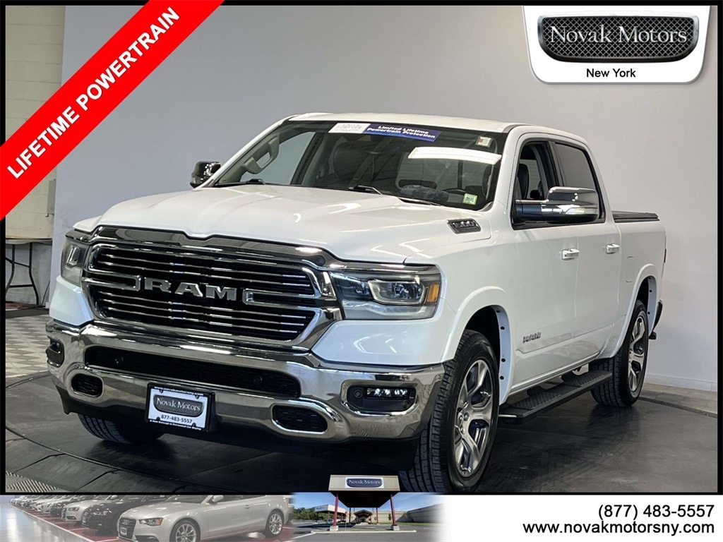 LOW MILEAGE-ONE OWNER-OFF LEASE-LIFETIME ENGINE AND TRANSMISSION WARRANTY-CLEAN CARFAX-FULLY SERVICED AND PASSED DEALERSHIP 58 POINT INSPECTION. 10 Speakers, Adjustable pedals, Auto High Beam Headlamp Control, Auto-dimming Rear-View mirror, Blind Spot & Cross Path Detection, Driver Seat Memory, Exterior Mirrors w/Memory, Foam Bottle Insert (Door Trim Panel), HEATED FRONT SEATS, Heated Steering Wheel, Laramie Level 1 Equipment Group (DISC), Leather Trim 40/20/40 Bench Seat, Memory seat, ParkSense Front/Rear Park Assist w/Stop, Pedal memory, Power 2-Way Driver Lumbar Adjust, Power 2-Way Passenger Lumbar Adjust, Power 8-Way Driver & Passenger Seats, Quick Order Package 27H Laramie, Rain Sensitive Windshield Wipers, Rear 60/40 Folding Seat, Rear 60/40 Folding Split Recline Seat, Rear Underseat Compartment Storage, Remote Tailgate Release, Ventilated Front Seats, Wheels: 20" x 9" Premium Paint/Polished.